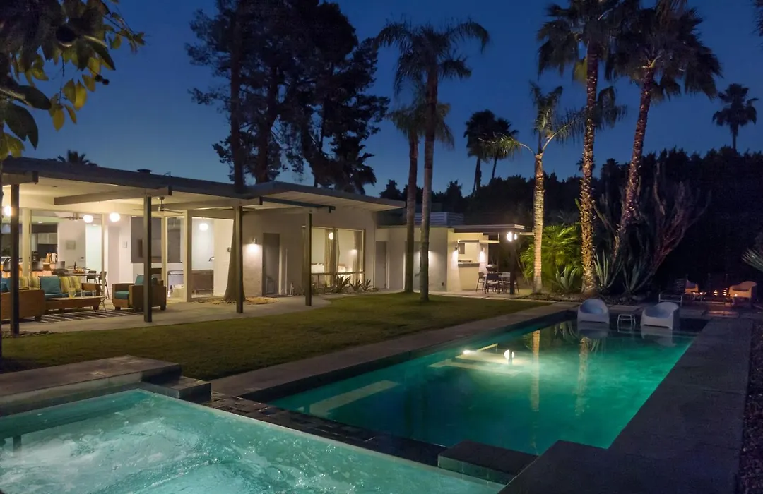 La casa de vacaciones está situada a unos 10 minutos en coche del Wet'n'Wild Palm Springs y a 1 km del Jardín Botánico Moorten y Cactarium. Las atracciones culturales cercanas incluyen el Museo de arte de Palm Springs, que se encuentra al lado de esta villa.